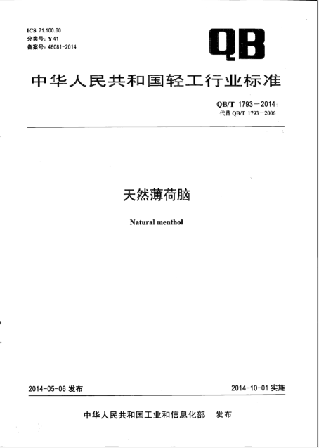 QBT1793-2014天然薄荷腦