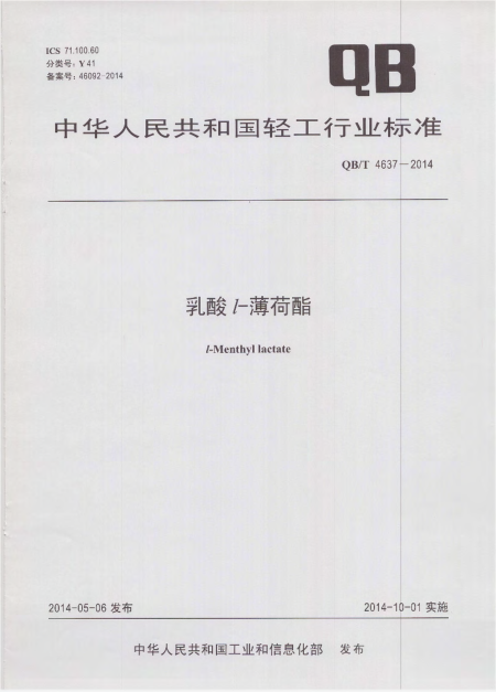 QBT4637-2014乳酸 l-薄荷酯
